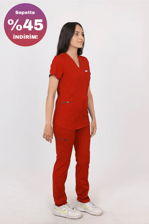 SAFİR PREMIUM SCRUBS SERİSİ, kadın sağlık çalışanlarının gün boyu hareketli ve yoğun çalışma temposuna uyum sağlayacak şekilde tasarlanmıştır. Modern çizgileri, esnek kumaşı ve çok cepli yapısıyla hem şık bir görünüm sunar hem de fonksiyonel kullanım avantajı sağlar.